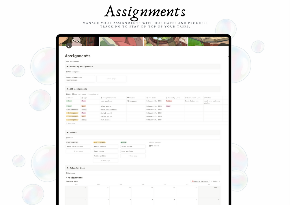 No more last-minute cramming or lost notesโthis template helps you streamline your student life so you can focus on what really matters! Start organizing your studies today and make student life easier than ever! ใพ(โโฝโ)